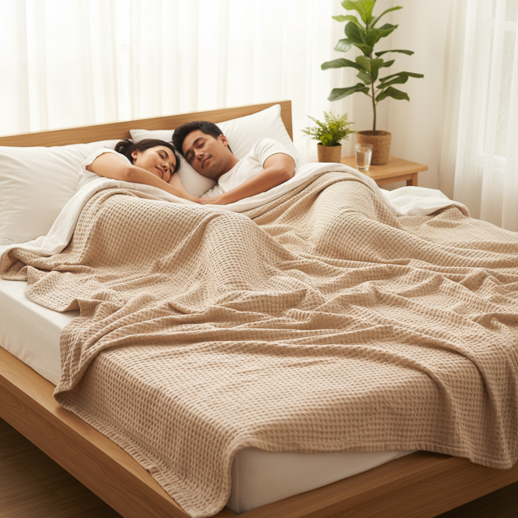 Stay cool with Malaysia’s #1 breathable waffle blanket for hot, humid nights.